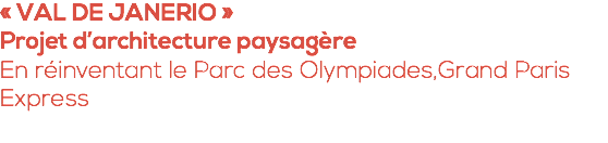 « VAL DE JANERIO » Projet d’architecture paysagère En réinventant le Parc des Olympiades,Grand Paris Express
