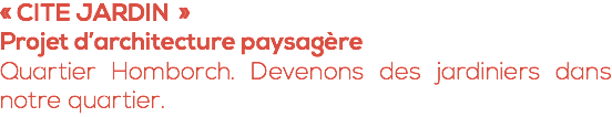 « CITE JARDIN » Projet d’architecture paysagère Quartier Homborch. Devenons des jardiniers dans notre quartier.